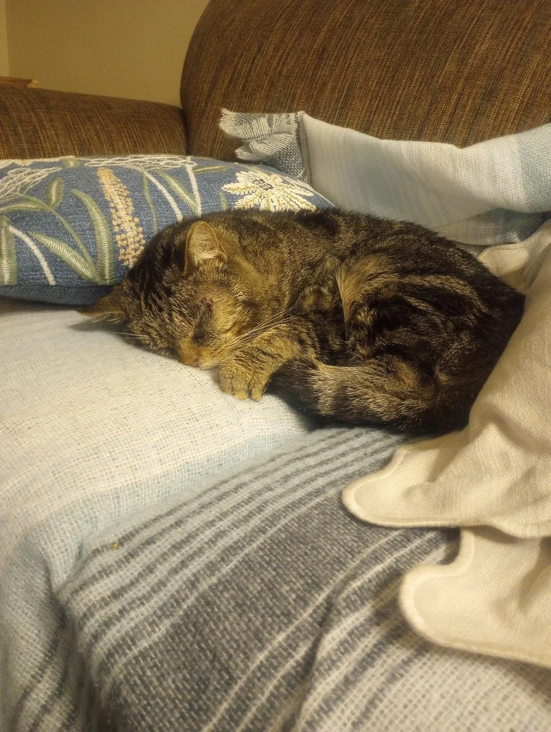 Bubba is a three-year-old male cat who once thrived outdoors – roaming, hunting mice and somehow surviving the elements. Over time, he found human friends and developed a close bond with Gina, a caring community member who regularly provided him with food and affection. When Bubba began experiencing severe eye issues that her gentle care and warm compresses could not resolve, Gina reached out to Touched By An Animal. Bubba was brought to our sanctuary where Executive Director Melanee sprung into action and took him to a vet clinic that provides excellent, comprehensive care for all our cats and kittens.